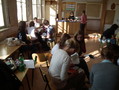 Nejpreve si studenti formou hry zopakovali témata o komunální politice, o nadaci Friedricha Eberta, o demokracii či o základních politických otázkách na celostátní úrovni. Následovala diskuse nad včerejším jednání zastupitelstva, ze které vyplynulo, že studenti ocenili věcnost jednání i práci opozice. Naopak upozornili na jevy, které by se asi vyskytovat neměly - např. telefonování v průběhu zasedání (vyjímku by mohli mít snad jen lékaři či zastupitelé, kteří z výkonu své profese musí být na telefonu), jíst v průběhu zasedání či z věcného hlediska by jistě bylo zajímavější, kdyby po vystoupení ředitele nymburské nemocnice následovalo přednesení zprávy zdravotní komise, která byla často v rozporu s tím, co pan ředitel uváděl (asi to brání proceduře jednání, ale pro následnou diskusi by to jistě bylo zajímavé). V závěru tohoto bloku studenti připravovali interpelace a návrhy na odpolední simulované jednání.
