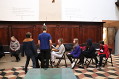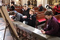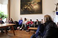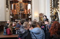 Potom, co jsme všichni bezpečně dorazili do Prahy na Masarykovo nádraží, jsme nastoupili na tramvaj číslo 15, která nás dopravila poblíž kostela Pražského Jezulátka. Před kostelem jsme se setkali s lektory, kteří pro nás měli připravený program. Začali jsme tím, že jsme si napsali jmenovky a seznámili jsme se s informacemi o tomto kostele, pak jsme vstoupili do kostela. První aktivitou bylo rozdělení do skupin podle barev jmenovky. Do jedné skupiny jsme dostali dřevěnou krychli. Tuto krychli jsme pak pokládali v kostele na místa, které nás zaujala nebo jsme se na ně chtěli zeptat. Pak jsme si šli dát přestávku do místnosti, kde jsme si odložili věci, a najedli se. Následně jsme dostali kartičky s 6 osobnostmi. Mezitím, co jsme svačili, tak pro nás bylo připraveno v kostele 6 tabulek s osobnostmi, které byly na našich kartičkách. Když jsme měli k osobnostem zapsáno, co si o nich myslíme, tak jsme pokračovali na další aktivitu. Naší další aktivitou byla návštěva krypty, zejména nejstarší místnosti, kde byla úplná tma. Měli jsme svíčky a říkali, kdo je náš vzor a jakou bychom chtěli mít jeho vlastnost. Potom, co jsme to řekli, tak jsme svou svíčku zapíchli do písku uprostřed místnosti.