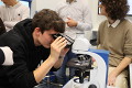 Studenti si mohli vyzkoušet přípravu preparátů pomocí mikrotomu a jejich následné pozorování pod mikroskopem. K vidění byla i skupinka „svítících“ myši či izolování DNA.