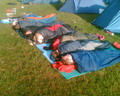 Středeční ráno bylo poněkud deštivější a tak se náš odjezd z kempu o dvě hodinky opozdil. Ani to nás ale nezabrzdilo v našem skvělém výkonu a u zříceniny Zlenice, kde jsme spali ze středy na čtvrtek, jsme byli již před pátou hodinou. Kolem jedenácté hodiny večerní však přišla krize! Nad Sázavu se snesla bouřka a někteří nejmenovaní jedinci byli nuceni opustit svůj stan, protože se v něm objevilo pár louží J. Naštěstí ve čtvrtek ráno vysvitlo slunko a naše stany dostály zaslouženého odpočinku.