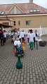 Když bylo vše připraveno, tak nás přidělili k různým třídám, se kterými jsme trávily zbytek dne jako asistentky. Každá třída oblékla jednu barvu olympijských kruhů a vytvořila tak tým. Pak už přišel ten správný čas zahájit hry, a tak jsme se po týmech seřadili na nádvoří a čekali co se bude dít.