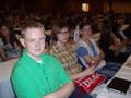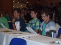 Někteří naši žáci se dostali i na oficiální fotografie: tým 6XA zabraný do řešení a dekorovaný šampion Saša.