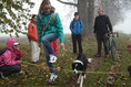 A potom zase pokračujeme dál do Hradišťka, kde nás zaujala jízdárna, dvůr s ovcemi a památnou hrušní. Odtud nás cesta dovedla na malebné náměstí a zde se k nám přidali další účastníci s kočárky, kteří přijeli autobusem. A teď nás bylo dohromady 32 lidí a jeden pes. Společně pak vyrazíme k místnímu hřbitovu. Odvážlivci, kteří vstoupili na hřbitov první, okamžitě našli hrob Bohumila Hrabala a spočítali, nebo se o to alespoň pokoušeli, kolik je na něm koček.