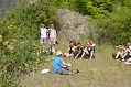 A nesmíme zapomenout ani na předposlední, čtvrtý den celého programu, kdy jsme se - někteří - vypravili zkoumat geologické prostředí Prokopského údolí. Někteří měli mírné problémy s dopravou, když se jim nepodařilo dostavit se včas na nádraží, ovšem nakonec jsme se všichni sešli a započali výstup na překvapivě strmé kopce nad Prokopským kanálem. Tam jsme především zkoumali geologický profil krajiny. I přes počáteční nesouhlasy jsme si odhlasovali a zpestřili program speciálním mrazíkem. Pak jsme hledali zkameněliny trilobitů pomocí rozbíjení kamenů kladivem. V tom nám štěstí bohužel moc nepřálo a skončili jsme pouze s jedním nálezem. Dozvěděli jsme se několik zajímavostí o vápenci, který se zde v minulosti i těžil, a pak jsme se vypravili na druhý program, který se zabýval všemocnou silou divoké přírody, která se postupně rozpíná dříve v úhledně upravených třešňových sadech nad Trójou.