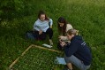 Vybraní jedinci se jali prozkoumat “Stařinu” i více do hloubky za pomoci rybářských kalhot. Někteří však podcenili zpevnění břehu a okusili Stařinu na vlastní kůži - viz přiložené video. Na druhou část jsme se přesunuli na louku, kde jsme smýkačkou chytali a později určovali druhy živočichů. Našli jsme od klíšťat, přes žluté pavouky až po krásná šídla. Také jsme zkoumali pokryvnost různých druhů rostlin pomocí rámu se čtverečky o velikosti 10x10cm. Vybrali jsme si vhodné místo s mnoha druhy rostlin, které jsme si zakreslili. Tato data jsme následně využili v pátek - viz dále v textu.