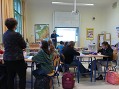 Jak hodina probíhala? Při příchodu do učebny, na nás čekaly ve třídě dvě paní učitelky z Francie. Každý z nás jim přečetl připravený text o sobě. Potom jsme se rozdělili na dvě skupiny a do každé skupiny šla i jedna učitelka. Hrály jsme s nimi hru na poznávání členů rodiny. Občas nám poradili jak se řekne nějaké slovo ve francouzštině nebo jaká je jeho výslovnost.