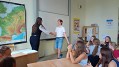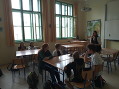Předávání pak přihlíželi naši noví francouzštináři z 3TB, kteří teď v září s výukou začali a mohli se tak svými spolužáky nechat inspirovat. V druhé části hodiny si také vyzkoušeli něco málo francouzsky říct a hlavně porozumět rodilé mluvčí. Obojí se jim dařilo.