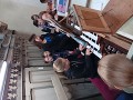 Měli jsme vzácnou příležitost vystoupat na kůr a dozvědět se mnoho zajímavostí o místních varhanách, o jejich původu, stáří, způsobu ladění, počtu píšťal, funkci rejstříků atd. Varhanice nám hrála části skladeb hraných např. při mších, měli jsme příležitost během hraní měnit barvu a zvuk pomocí rejstříků. Na konci exkurze si sami studenti měli možnost hraní na královský nástroj vyzkoušet.