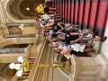 Když jsme se dostatečně pokochali, sešli jsme trochu níže, do části muzea s expozicí Dějiny. Tady jsme se mohli doslova projít českými dějinami od 8. století až do 1. světové války. Mohli jsme si prohlédnout vše, od maličkých gombíků přes dobové iluminace až po arcibiskupský kočár z 18. století. Z poslední místnosti expozice jsme pak vešli přímo do majestátního Pantheonu, místnosti hned pod kopulí, která připomíná slavné osobnosti české vědy, společenského života a umění převážně z 19. a 20. století. Když jsme si všechny sochy a busty prohlédli, opustili jsme Národní muzeum a k radosti většiny zamířili do nedalekého McDonald’s. Pak už jsme jen došli na nádraží a jeli z krásného výletu domů.