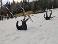 Při našem příjezdu sníh mizel a zůstával jen ten uměle vytvořený. Ten nám naštěstí posloužil první dny pro základní výcvik na běžkách. Jak dny v týdnu kurzu přibývaly, začalo se výrazně k lepšímu, počasí měnit. Od středy začalo mrznout a nepřestalo do našeho odjezdu. Navíc začalo sněžit a tak se bahenní kurz započal proměňovat na jiskřivě zasněžený! Bohužel vysněné množství přírodního sněhu pro spuštění lanovek a vleků chybělo a tak se opět spustila sněhová děla a zasněžovalo se na 120%. To nám umožnilo se svézt i v další dny na běžkách a na samý závěr kurzu i na sjezdovkách!
