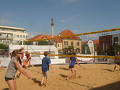 V úterý patřilo hřiště našim studentům, kteří postavili 6 čtyřčlenných týmu, jež se utkaly mezi sebou v jedné skupině, hrálo se na jeden set do 21. Vítězem se stal STROM ve složení Jirka Szita, Vojta Pustý, Míša Rumlerová, Ondra Danzer.