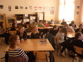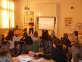 Vojta studentům svůj přiběh představil a zároveň popsal studium ve francouzském La Rochelle. Naši studenti se tak mohli inspirovat další zajímavou možností, která se jim otevírá díky studiu francouzštiny. Vojta totiž nepobývá jen v La Rochelle, ale jeho školní aktivity ho letos zavedou i na praxi do Peru. Nezbývá než doufat, že inspiroval některé ze současných francouzštinářů a oni za několik let budou také na našem gymnáziu mluvit o tom, v jaké zemi zrovna studují. Vojtovi i jim držíme palce.