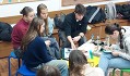 V Židovském vzdělávacím centru v Maiselově ulici na nás čekala milá průvodkyně. Součástí programu byl workshop Badatel. Nejdřív jsme si povídali o tom, co všechno už o Židech a judaismu víme. Pak jsme se rozdělili do pěti skupin a rozebrali si různá témata. Měli jsme o nich zjistit co nejvíce informací a poté je co nejjednodušeji odprezentovat ostatním spolužákům. Mezi tématy byl například klasický běh života a domácnost, židovská svatba anebo třeba svátky šabat a pesach.