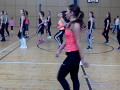 Účastníci vždy cvičili v základním kole podle cvičitelky a porota průběžně hodnotila jejich dovednosti. Do finálového kola potom byli vybráni nejlépe cvičící a po krátkém odpočinku tak nejúspěšnější odcvičili ještě finálové kolo. V letošním roce neobhajovala Nela Vohradská své vítězství, protože byla požádána organizátory, aby byla předcvičující pro základní kola v kategorii III a IV. Do finálových kol postoupili Karolína Rejmanová, Nikola Skopalíková, Vendula Mikešová v kategorii IV dívky, Emma Formánková v kategorii III dívky a Adolf Toman v kategorii IV chlapci. Adolf Toman absolvoval finálové cvičení hned v prvním kole, kde cvičení pro chlapeckou kategorii bylo zaměřeno na posilovací cvičení a Fitbox. O vítězství Adolfa nebylo pochyb už během cvičení a získal tak první medailové umístění pro gymnázium. Kategorie dívek III a IV měla společné finálové cvičení, takže soutěž vygradovala cvičením a vyhlašováním obou kategorií. V kategorii IV nakonec obsadila po velmi pěkném cvičení 2. místo Nikola Skopalíková a 3. místo Vendula Mikešová, ale ani ostatní děvčata se ve finále určitě neztratila. Stojí také za zmínku, že děvčata sklízela v soutěži i trenérské úspěchy, protože v mladších kategoriích nastupovala děvčata z jejich tréninkových skupin. Karolína Rejmanová tak získala jako trenérka jedno medailové umístění a Nela Vohradská se podílí na tréninku celkem pěti medailistek. Kromě už zmíněných se soutěže zúčastnily a velmi dobře si zacvičily ještě Barbora Motlová, Kristýna Vomelová. Všem děkuji za úspěšnou reprezentaci školy.
